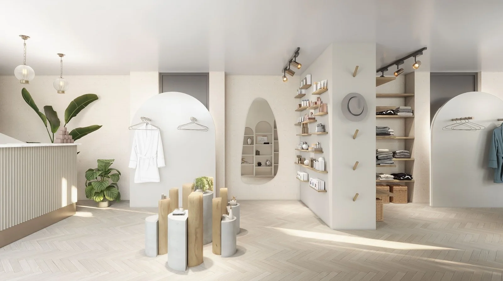 The new ICE-CREAM & CONVENIENCE store at Eden Roc is a space that aims to integratenot only a shopping area but also a place to linger, all while maintaining the luxury andquality that characterize the hotel chain. The store aligns with the brand’s new valuesand aesthetics, embodying the concept of a cosmopolitan beach in a relaxed and well-designed environment.