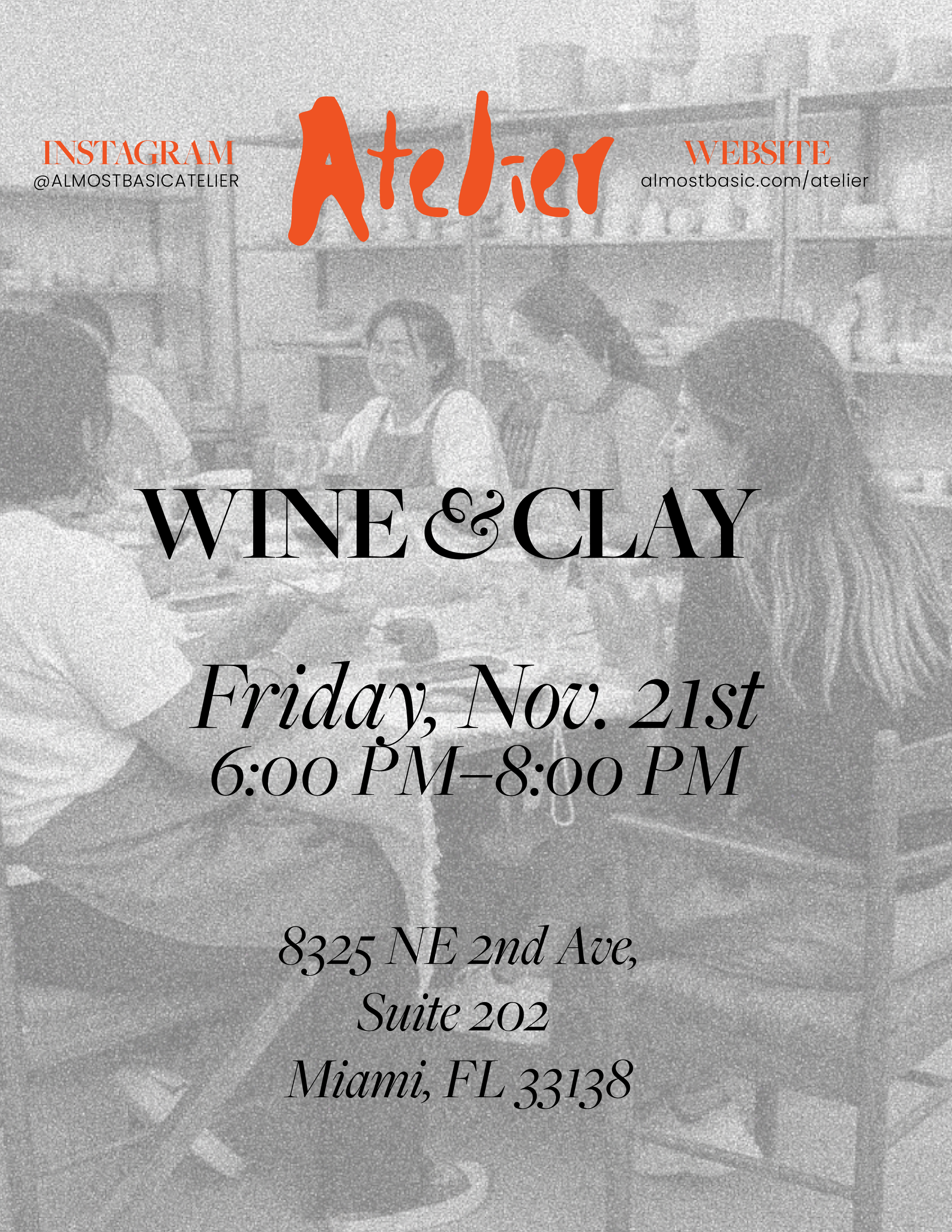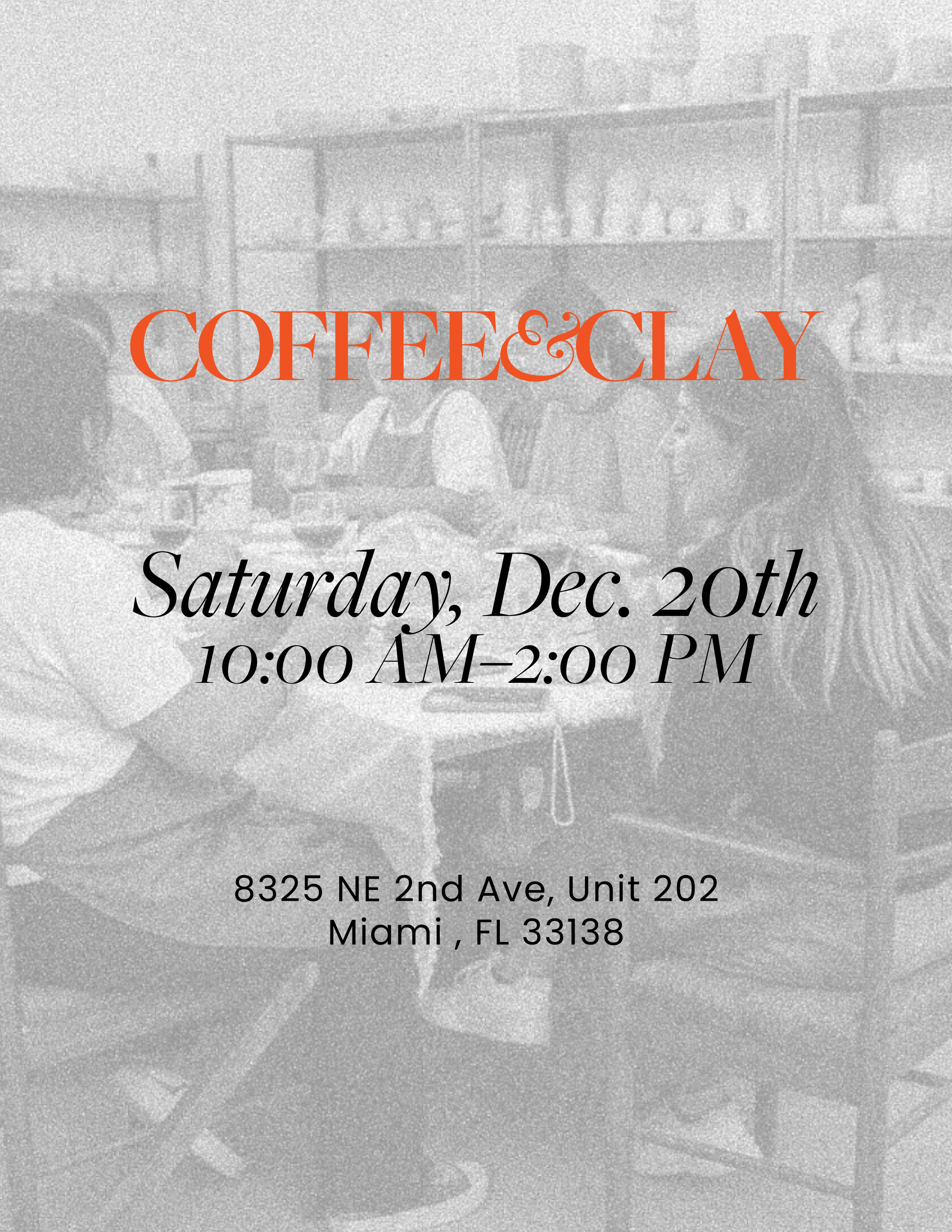 Shop the Collection Coffee and Clay (Saturday November 29th · 10:00 AM–12:00 PM) $95.00 Sold out Sold Out Added! Coffee and Clay (Saturday December 20th · 10:00 AM–12:00 PM) $95.00 JOIN Added! Friday Night Clay Play (Friday. December 26th · 6:00 PM–8:00 PM) $95.00 JOIN Added! Friday Night Clay Play (Friday. December 12th · 6:00 PM–8:00 PM) $95.00 JOIN Added! 5-Week Introduction to Handbuilding Workshop $350.00 JOIN Added! Weekly Ceramic Membership with Guidance (every Wednesday from 6:00 PM - 8:00 PM) $240.00 View Options Holiday Village House Candle Holder Workshop (Saturday December 6 · 10:00 AM–1:00 PM) $95.00 JOIN Added! Wine and Clay (Friday. November 21st · 6:00 PM–8:00 PM) $95.00 Sold out Sold Out Added! Gift Card from $95.00 Select Value $95.00 $350.00 $240.00 Purchase Added!